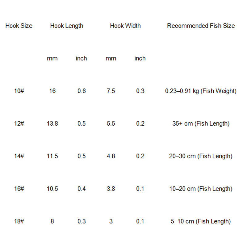 Rozmiar haczyka: Dostępne w rozmiarach 10#, 12#, 14#, 16#, 18#