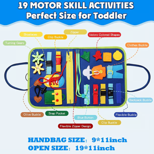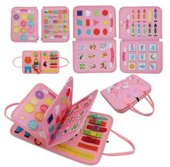 ✔︎ Różnorodne zajęcia: oferuje różnorodne zajęcia, w tym zamki błyskawiczne, guziki, klamry, sznurowadła i wiele innych, które pobudzają ciekawość i angażują dzieci.