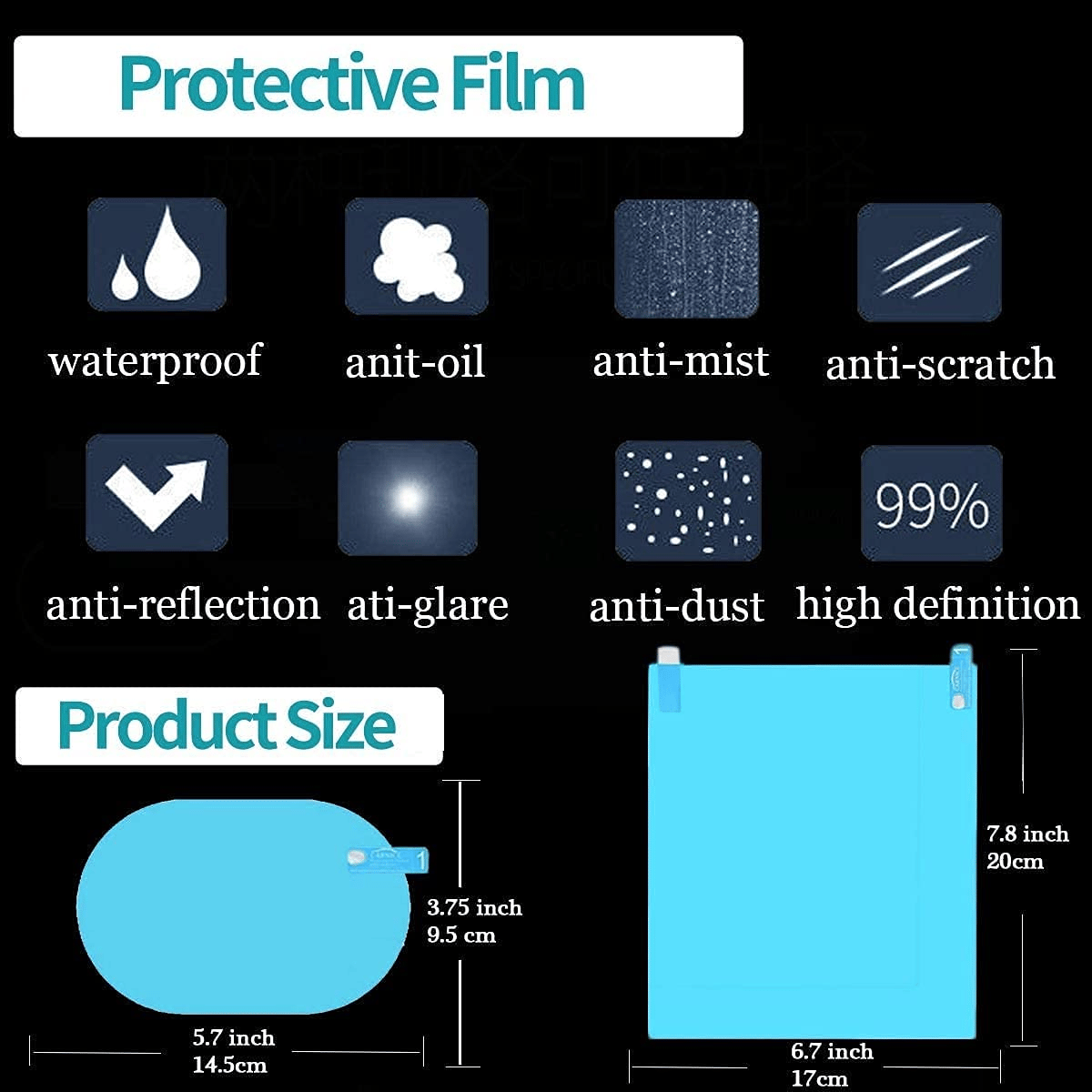 - Quality material: PET and nano-coating, water droplets can spread quickly, without dew condensation and good transparency, ensure you a clear vision and safe driving, can prevent strong light reflection, reduce light glare, soften visual fatigue, see more clearly even for strong light at night.
